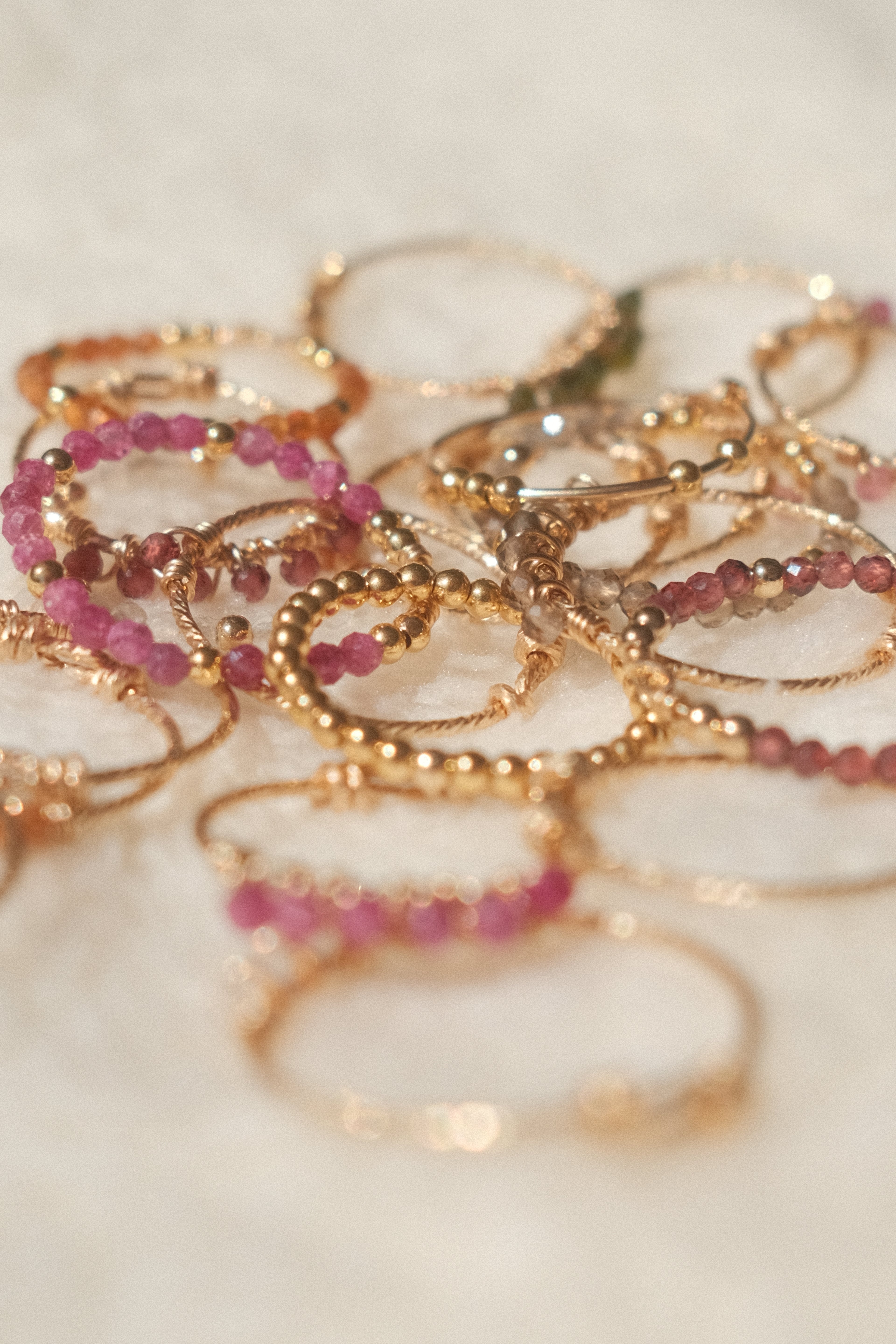 Des bijoux intemporels et résistants, faits à la main sans machine et sans soudure, mais avec passion. Un mélange de pierres précieuses, pierres fines, perles de culture et d’acier inoxydable PVD plaqué or 18/24 carats, le tout fabriqué entièrement à la main dans le Sud de la France.