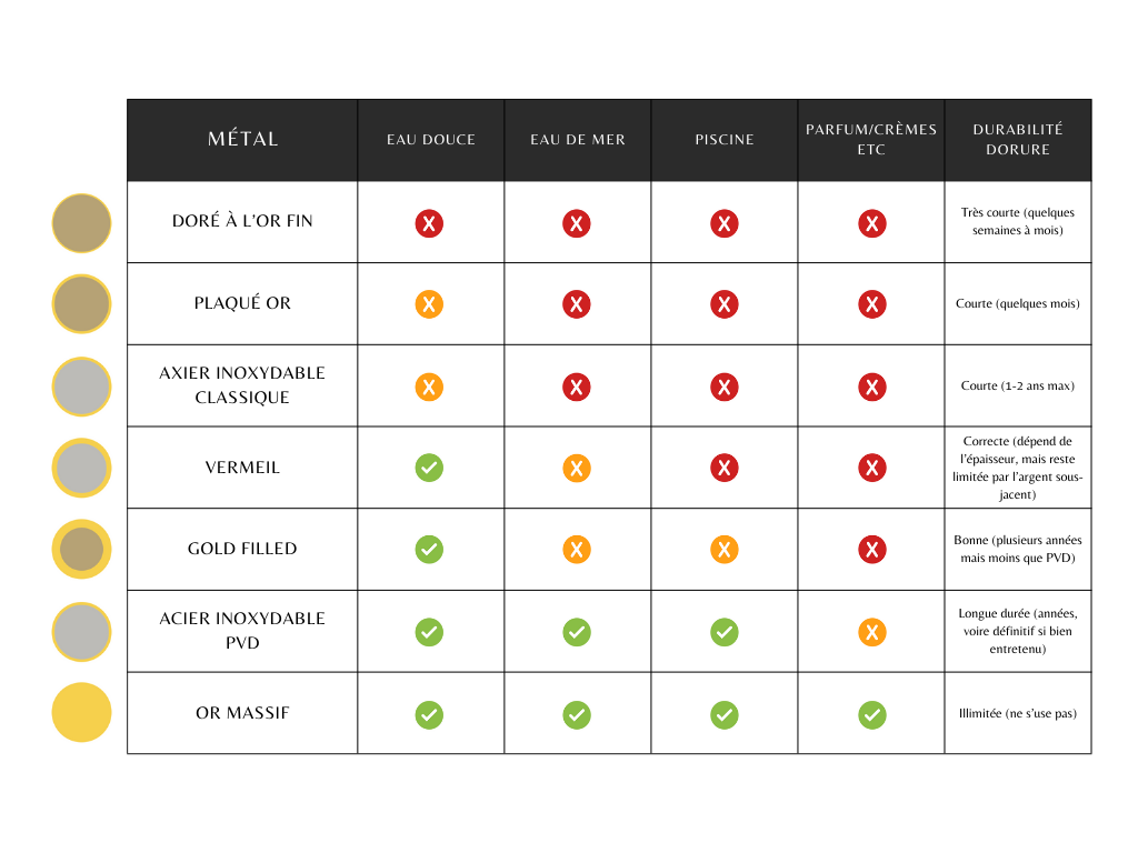 Durabilité et dorure de nos bijoux